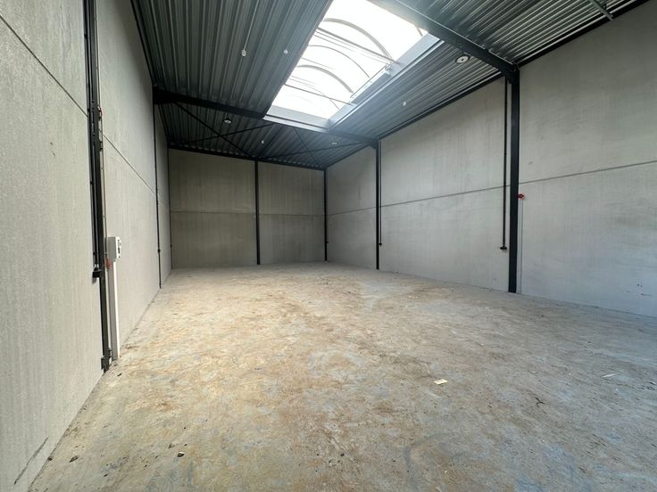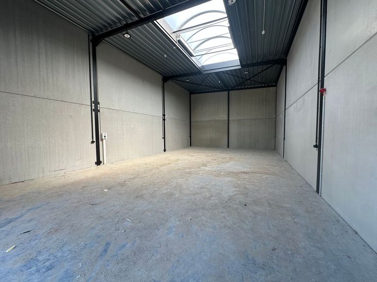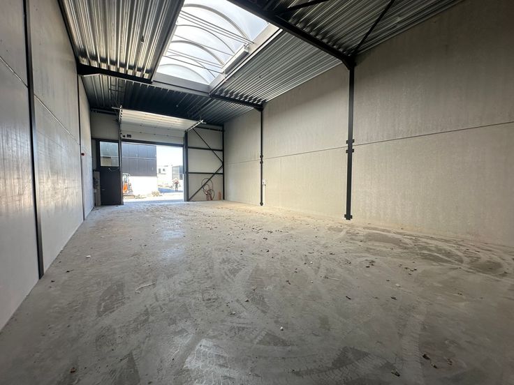 De casco opslagruimte met een vrije hoogte van 6 m is uitgerust met een automatische sectionale poort (4 m B x 4,50 m H) met aparte toegangsdeur, lichtstraat en polybetonvloer. De loods maakt deel uit van het gloednieuwe KMO-project "ZEUS" bestaande uit 18 KMO-units te koop met oppervlaktes van 127 m² tot 546 m², samenvoegbaar tot grotere entiteiten.