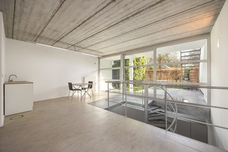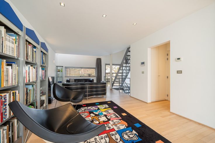 Dit modern architectengebouw uit 1996 is de perfecte plek om wonen en werk te combineren en is opgedeeld in 4 niveaus. Het kantoor met toilet bevindt zich op de benedenverdieping. Achteraan is er een draaitrap naar de ondergrondse bureauruimte met natuurlijk lichtinval, dankzij de glasplaat. Verder is er een rustgevend terras om even te kunnen ontspannen. Het woongedeelte bevindt zich op 3 verschillende niveaus. Via de inkomhal is er toegang naar het kantoor en de ondergrondse slaapkamer/bureau, ook met natuurlijk lichtinval. Op de eerste verdieping hebben we de lichtrijke woonkamer met ingerichte open keuken, toilet en een zonnig terras. Van hieruit heeft u toegang tot de tuin achteraan. Tenslotte zijn er nog 2 slaapkamers en een badkamer met douche, designwastafel en toilet op de 2de verdieping. Via de Zegersdreef heeft u toegang tot de garage die leunt aan de tuin achteraan.
