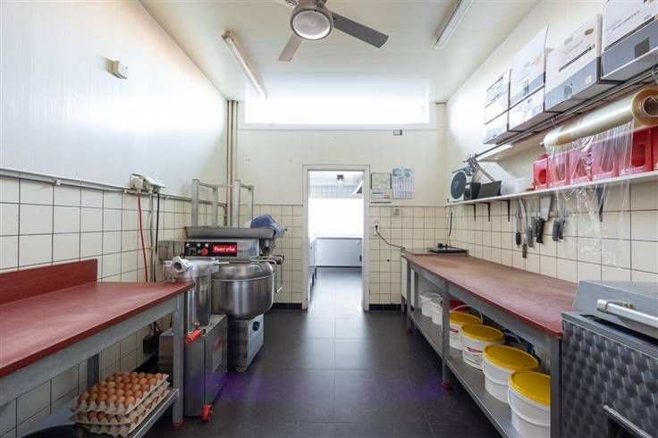 Op een interessante commerciële locatie te Kontich Kazerne nabij het station vinden we deze mooie handelsruimte met atelier, ruime garage en woonst. Dankzij de locatie met parking voor de deur is het pand geschikt voor vele doeleinden. Een bijkomende troef is de mogelijkheid om langs de achterzijde te leveren waar er een mooie betonvloer aanwezig is op oprit en in de garage tot aan het atelier. De woonst beschikt over een leefruimte, slaapkamer, kleine badkamer en keuken. Het pand werd steeds goed onderhouden en beschikt over nieuwe ramen. Zeer leuke opportuniteit in hartje Kontich Kazerne. Aan de voorzijde vinden we de winkelruimte terug welke op heden mooi ingericht is. Achterliggend is er een koelruimte en atelier waar men d e bereidingen kan maken. Naast het atelier is er een volledig geïnstalleerde keuken voorzien uitgerust met allemaal kwalitatieve toestellen. Via een veiligheidsdeur in de traphal betreden we de privé vertrekken welke vandaag verbonden zijn met het handelspand. Er is een mooie leefruimte, kleine badkamer met lavabo, douche en toilet en een ruime slaapkamer aanwezig. Achterliggend is er een overdekte koer van 35 m². Vervolgens vinden we de ruime garage (53 m²) geschikt voor 2 wagens en bijkomende opslag. Er is een grote sectionaalpoort voorzien. Er is een oprit van 62 m² die uitgeeft op een achterliggende straat. Zeer handig voor leveringen en als extra parkings. Er is een berging en ruime kelder (35 m²) aanwezig voor opslag.