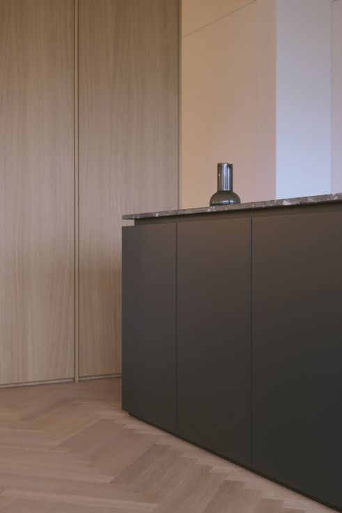 Afwerking met hoogwaardige materialen: doorlopende visgraat parket, fineer schrijnwerk, extra hoge, kaderloze deuren, deurklinken van Vincent Van Duysen, strakke radiatoren en Italiaanse design kranen. Overal inbouwkasten, dimbare verlichting, veel stopcontacten, tv/internet in elke kamer.
