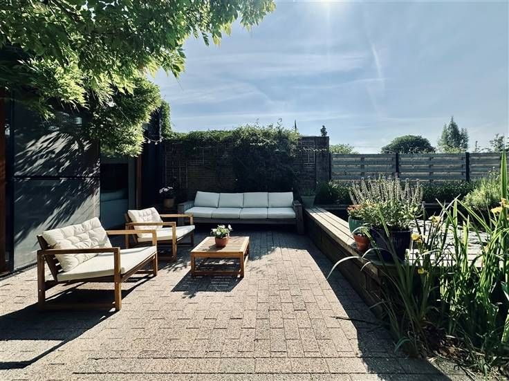 Deze totaal instapklare halfopen bebouwing is gelegen nabij het centrum van Bazel. Een gigantisch gezellige tuin, zonnig terras en prachtige achterliggende groene velden. De indeling van dit pand is als volgt: U betreedt de woning via de inkomhal met gastentoilet. Verder bereikt u de ruime keuken met praktische bergruimte. De aanpalende eetkamer en living hebben net zoals de keuken zicht op het terras, de vijver en de tuin. Eens in de tuin is er de polyvalente ruimte, voorzien van water en elektriciteit, en een tuinhuis. Ook bevindt er zich een buitenkeuken met pizzaoven en tweede terras onder de pergola. Helemaal achteraan de tuin heeft u weliswaar weids uitzicht over de velden. Aan de voorzijde van de woning is er de eerste slaapkamer en een ingerichte badkamer. De badkamer is uitgerust met grote inloopdouche, ligbad, riant lavabomeubel en een toilet. Via de metalen trap bereikt u de eerste verdieping. Daar is de tweede leefruimte gelegen. Opnieuw aan de voorzijde van de woning bevindt zich een tweede slaapkamer. Via de houten trap bereikt u de tweede en laatste verdieping. Momenteel staat deze ruimte dienst als bureau. Uiteraard kan deze ruimte ook worden gebruikt als derde slaapkamer. Nog enkele troeven van deze woning: Vloerverwarming, zonnepanelen, airco, volledig instapklaar, gebruik gemaakt van moderne en hoogwaardige materialen, polyvalente buitenruimte en parkeermogelijkheden op de oprit. Interesse? Mail vrijblijvend naar verkoop@bebuild.be en ga met ons te