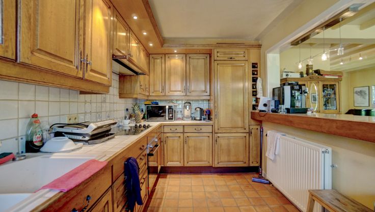 Omvat: inkomhal, wc, bureel 13m², living 49m² met inbouwhaard en houtkachel, open ingerichte keuken, 3 slaapkamers (20m² - 12m² - 9m²) met ingemaakte kasten, douchekamer, wasplaats-berging, 2de berging, carport.