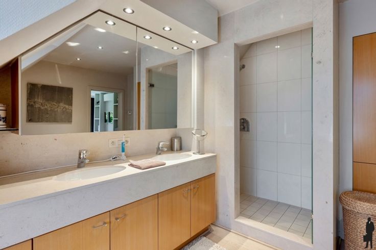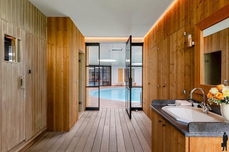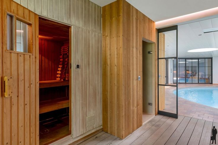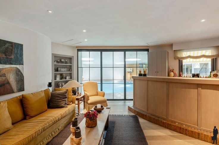 De kwalitatieve villa gelegen met grote leefruimte, eetkamer, keuken, binnenzwembad, bar, sauna, grote tuinkamer/orangerie,... Deze villa beschikt over een mooi aangelegde tuin met grote vijver. Op de eerste verdieping van de woning zijn 5 slaapkamers en 3 badkamers gelegen. In de slaapkamers is bovendien ook airco aanwezig.
