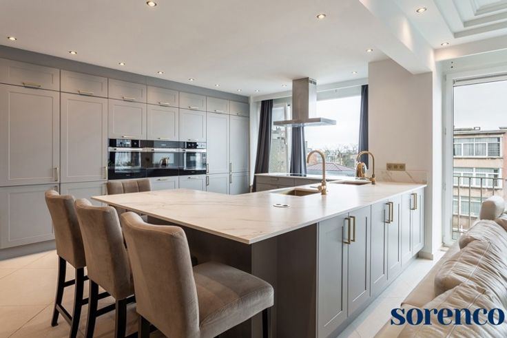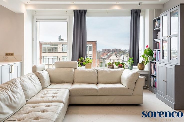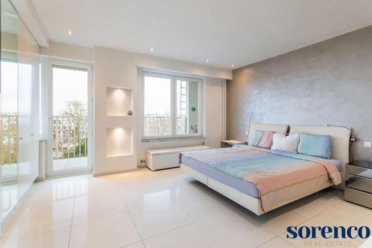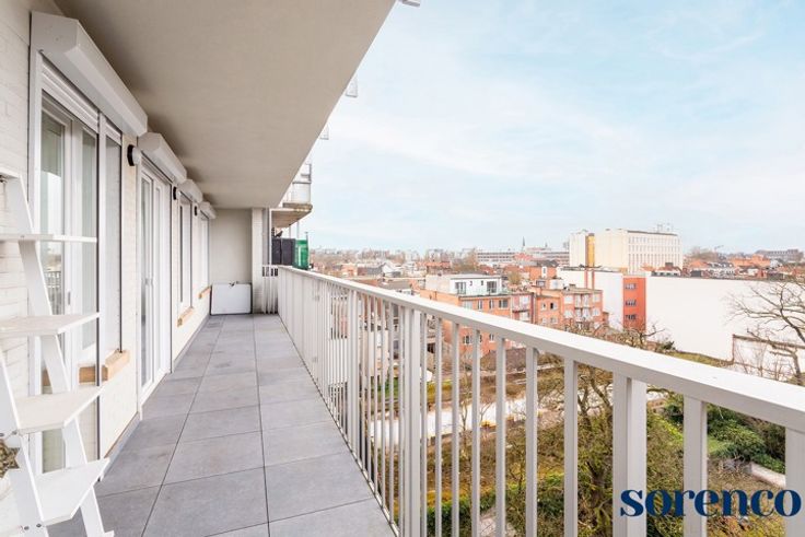 Kwalitatief gerenoveerd en ruim 3 slaapkamer appartement van ca. 185 m² met een zonnig terras ca. 20m² gelegen op de 7e verdieping, genietend van prachtige uitzichten.  Gelegen in een levendige buurt, nabij scholen, openbaar vervoer, het Stadspark, het station en belangrijke in- en uitvalswegen. INDELING; De veiligheidsdeur geeft toegang tot de INKOMHAL met vestiaire en een apart gastentoilet. De lichtrijke en ruime LEEFRUIMTE (ca. 65 m²) geniet van een overvloed aan natuurlijk licht dankzij de grote raampartijen. U geniet tevens van een open uitzicht. De leefruimte is voorzien van een zithoek en een eetkamer. De open ingerichte KEUKEN met maatwerk en een werkblad in neoliet is voorzien van hoogwaardige MIELE-toestellen, waaronder ovens, een microgolfoven, een warmhoudlade, een inductiekookplaat met dampkap, een vaatwasser, koelkast, diepvriezer en twee spoelbakken. Via de brede NACHTHAL bereikt u de achtergelegen slaapkamers. De ruime MASTERBEDROOM met ingemaakte kastenwand, ensuite de badkamer voorzien van een JacuzziI-ligbad, een inloop regendouche en een dubbele lavabo in een meubel. 2 extra slaapkamers en een ingerichte BADKAMER met ligbad en een dubbele lavabo. Achteraan bevindt zich het prachtige westgerichte TERRAS ca. 20 m². De achtergevel en terrassen werden recent gerenoveerd. Daarnaast is er een aparte WASBERGING. Kelder inbegrepen, twee overdekte parkeerplaatsen zijn optioneel te huur aan de achterzijde van het gebouw. BIJZONDERHEDEN; Zeer gunstig EPC: 9