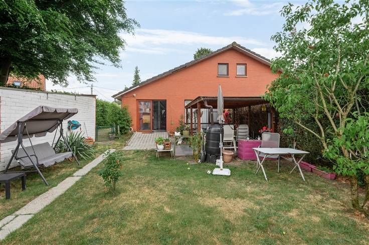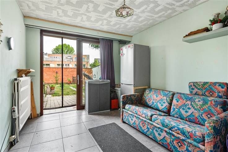 Te renoveren twee onder één kap woning op een mooi perceel van 591m2 met 3 slaapkamers. Deze woning dateert van 1975 en heeft volgende indeling; inkomhal op stenen vloer met gastentoilet, ,lichtrijke woonkamer op stenen vloertegel, afzonderlijke basic keuken met naastliggende voorraadkamer/berging, badkamer met douche, lavabomeubel, 2 ruime slaapkamers ca. 16m2 en 12m2, waarvan één kamer toegang geeft tot de tuin. Zolderverdieping is toegankelijk via een trap; 1 slaapkamer is afgewerkt, overige ruimten van de zolderverdieping zijn casco /niet afgewerkt maar kunnen perfect ingericht worden naar een 2e of 3 kamer. Naast de woning beschikt men over een oprit met achteraan een garagebox. Tuin achteraan is omheind. Woning is verhuurd.