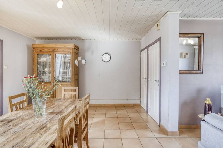 Op het gelijkvloers vinden we een woonkamer (ca. 32m²) en een keuken (ca. 8m²) die is uitgerust met een dubbele spoelbak, oven, gasfornuis, afzuiging en voldoende kastruimte.Verder is er op deze verdieping nog een inkomhal, bergplaats/wasplaats (ca. 15m²) en een badkamer (ca. 3m²) met douche en wastafel. Op de eerste verdieping zijn er drie slaapkamers (ca. 6m² - 13m² - 13m²).De tweede verdieping is bereikbaar via een vaste trap en geeft toegang tot de zolderkamer (ca. 30m²)Buiten is er een oprijlaan voor 2 auto's en een carport. Er is een lange diepe tuin met tuinhuis en garage achteraan.DIVERSEN:- Kelder (ca. 15m²)- Ramen van pvc met dubbel glas- Rolluiken van 2013- cv ketel op stookolie (bovengronds)- Aangrenzend aan de woning is er nog een apart berghok (ca. 5m²)(ver-)Kopen of (ver-)huren in Kalmthout, Essen en omstreken?Met vragen kan u altijd bij ons terecht! Dewaele Vastgoed Kalmthout