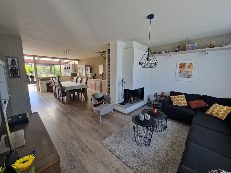 Lichtrijke leefruimte met moderne gashaard