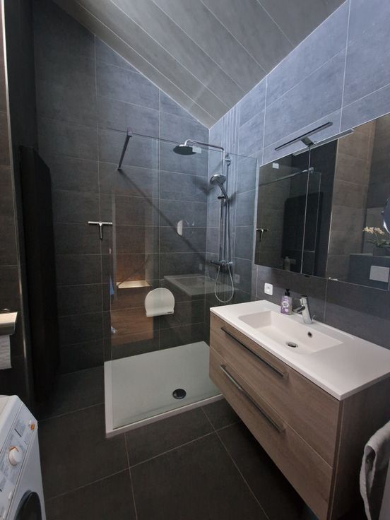 Vernieuwde badkamer met inloopdouche, lavabo en toilet