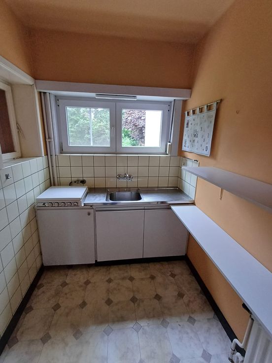 Rustig gelegen te renoveren woning met 3 slpk, volledig onderkelderd, garage, grote tuin zuidwest gelegen. Onmiddellijk beschikbaar. Openbaar vervoer op wandelafstand. Te bezichtigen na telefonische afspraak.