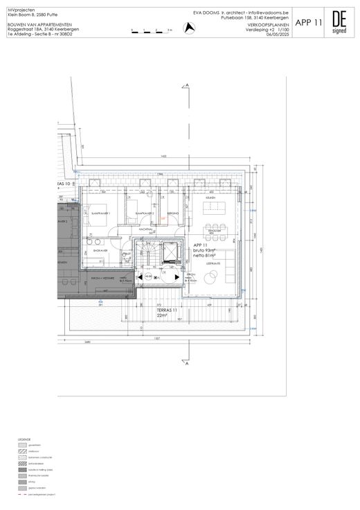 Appartement 11 is gelegen op de tweede verdieping en is een ruime penthouse van 93m² met 2 slaapkamers, 1 badkamer en een privatief terras van maar liefst 22m².