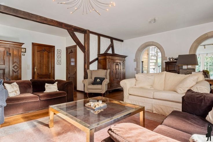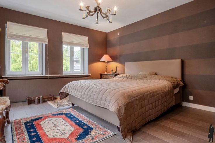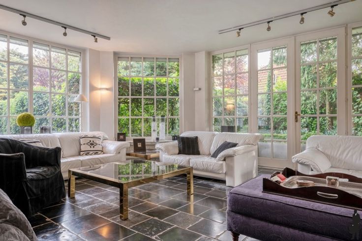 Goed onderhouden in het centrum gelegen karaktervilla op een perceel van ca. 1.938 m²! Deze woning is voorzien van 5 slaapkamers en 2 badkamers. Gelijkvloers: inkomhal met vestiaire kast en gastentoilet, leefruimte bestaande uit twee niveaus waaronder een gezellige zitkuil rond de open haard, cosy tuinkamer, keuken voorzien van alle toestellen, smeedijzeren draaitrap welke toegang geeft tot polyvalente ruimte, extra studio/appartement met open keuken, woon- en slaapgedeelte, badkamer, wc, aparte inkomhal. Eerste verdieping: 5 slaapkamers en 2 badkamers Zeer verzorgde, groende tuin met mooi aangelegde perken, hagen en terrassen. Volledige privacy in het centrum!