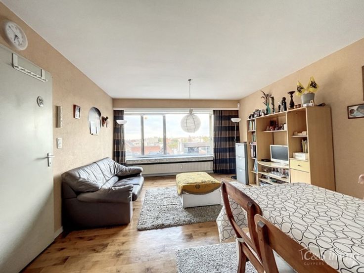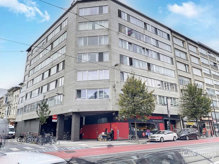 Gunstig gelegen studio- appartement (55m²) in aangenaam en goed onderhouden gebouw. Inkomhal met maatkasten, ruime living met aparte slaaphoek, ingerichte keuken met toestellen (elektrisch fornuis/oven, dampkap, ijskast, aansluitingen wasmachine en droogkast), badkamer met ligbad/douche en lavabo, privatieve kelder. Elektriciteit volledig vernieuwd. Gunstige EPC-score 141 kWh/m² (label B). Lift en dak conform. Lage algemene onkosten. Mooi open uitzicht vanop de 5de verdieping. Gemakkelijke verbinding naar 'hartje centrum', tramhalte voor de deur. Ideale investeringsmogelijkheid. Studio is momenteel verhuurd (huurprijs € 606 + € 150 onkosten). P&G Score A