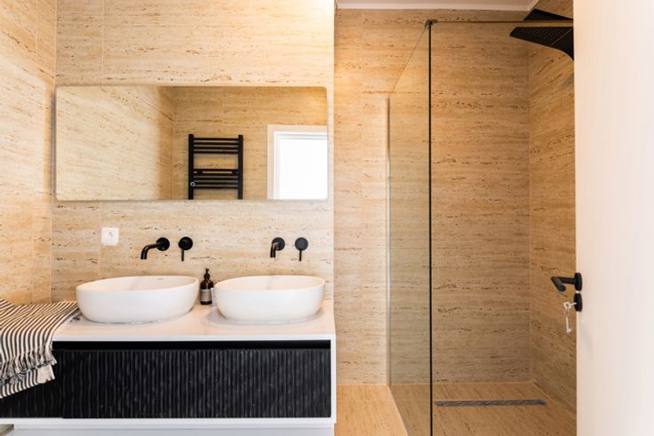 Een extra terras achteraan om van te genieten vind je telkens aan één van de slaapkamers. Heerlijk rustig wakker worden, dus. De nieuwe badkamers zijn voorzien van een dubbele lavabo met inbouwkast en inloopdouche.