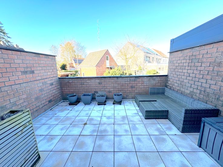 De lichtrijke leefruimte, voorzien van airco, vormt samen met de open en volledig uitgeruste keuken het kloppende hart van de woning. Aansluitend bevinden zich een praktische berging en een gezellig terras.