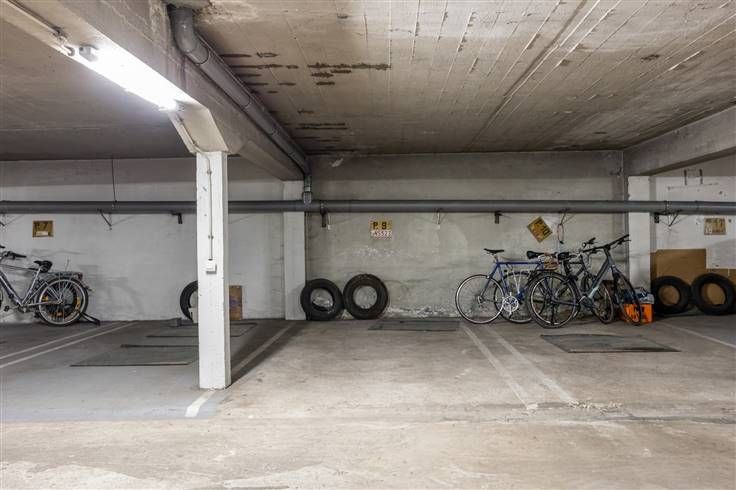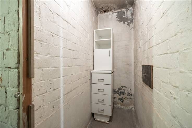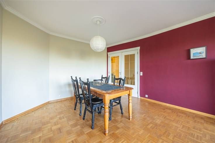 Een appartement met karakter en uitzicht, dat is wat je vindt op de 4e verdieping van dit typerende jaren ’60 gebouw in de Rodekruislaan in Berchem. Denk mozaïekparket, kroonlijsten aan het plafond en vooral: licht, ruimte en een vrij zicht over de buurt. Geen inkijk, geen drukte, gewoon rust en zon op je eigen terras van 7,5 vierkante meter. Vooraan in het appartement ligt de leefruimte, waar het daglicht royaal binnenvalt en de houten parketvloer voor een warme sfeer zorgt. Aansluitend vind je de keuken, eenvoudig maar functioneel, met zicht op straat en het dagelijkse leven dat voorbijraast. Achteraan zijn er twee slaapkamers, waarvan de grootste uitgeeft op het terras – ideaal voor wie houdt van wakker worden met een frisse neus of een boek lezen in de zon. De badkamer ligt centraal in het appartement en is voorzien van een ligbad met douchefunctie. Het toilet is apart, wat altijd mooi meegenomen is. De vloerbekleding wisselt tussen parket, laminaat en tegel – elk met z’n eigen karakter, net als het appartement zelf. In 2013 werden er al enkele werken uitgevoerd, maar het geheel mag gerust een opfrissing krijgen. Zie het als een blanco canvas met een mooie basis: authentieke elementen, een praktische indeling en een gebouw met geschiedenis. En dan zijn er nog de extra’s: twee kelderbergingen voor alles wat je liever uit het zicht houdt, en een ondergrondse autostaanplaats (verplicht bij aan te kopen aan € 17.000) zodat je nooit hoeft te zoeken naar een parkeerplek. De