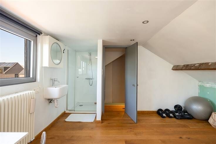 Deze rustig gelegen woning ligt in een doodlopende straat vlakbij kasteel d'Ursel. De woning werd recentelijke volledig gerenoveerd. Bij binnenkomst betreedt u de inkomhal waar zich een apart toilet bevindt. Dankzij de grote raampartijen geniet de leefruimte, van 20 m². De open leefkeuken is uitgerust met moderne toestellen zoals inductievuur, dampkap, SMEG koelkast, steamer, combi-oven en aparte oven. Via de keuken heeft u directe toegang tot het ruime overdekte terras dat leidt naar de tuin. In de tuin bevindt zich ook een tuinhuis dat omgetoverd is naar een volwaardige berging. Op de 1ste verdieping bevindt zich één volwaardige slpk. van 12m² met een dressing, airconditioning en een ensuite-badkamer met ligbad, douche en wastafel. De dressing kan eventueel worden ingericht als kinderkamer of bureauruimte. Daarnaast is er een extra toilet en een wasplaats. De zolderverdieping is volledig ingericht als volwaardige 2de slpk. van 17m² met een airconditioning, aparte douche en wastafel. Deze volledig afgewerkte woning beschikt daarnaast ook over 13 zonnepanelen. De woning beschikt over een oprit en biedt ook de mogelijkheid tot aankoop van een privatieve garagebox mee aan te kopen voor 32.000 euro. Dronebeelden te bekijken op de website. Bijzonderheden: - Energiezuinig met EPC label A - Zonnepanelen - Ruime zolder - Garagebox Dossierbeheerder: Sinem Ayhan - Sinem@omniavastgoed.be - 0466/08.01.90