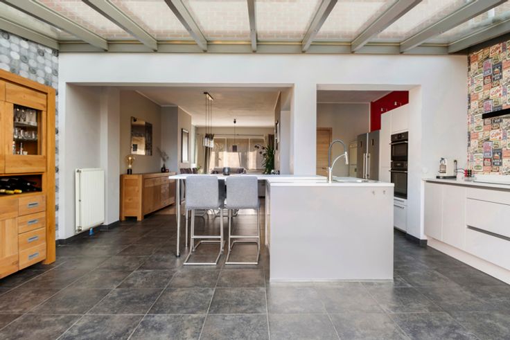 Instapklare gezinswoning met tuin in kindvriendelijke wijk te Edegem In de rustige en geliefde woonwijk ‘Molenveld’ te Edegem vindt u deze charmante, instapklare gezinswoning met zonnige tuin. Deze buurt is bijzonder kindvriendelijk, met meerdere speeltuintjes op wandelafstand. Winkels, kwaliteitsvolle scholen, sportclubs, ziekenhuizen, Fort V, Hof ter Linden, Kattenbroek en openbaar vervoer bevinden zich allemaal in de onmiddellijke omgeving. Bovendien is er een vlotte verbinding met Antwerpen en Brussel, ideaal voor pendelaars. Indeling Bij binnenkomst in de woning betreedt u de inkomhal met een apart gastentoilet. De lichte en volledig uitgeruste leefkeuken bevindt zich achteraan en kijkt uit op de tuin – ideaal voor wie houdt van koken in een luchtige, gezellige sfeer. Vooraan ligt de gezellige woonkamer met warme parketvloer. Op de eerste verdieping zijn er drie slaapkamers: twee ruime kamers en een derde van 10 m², perfect als kinderkamer of bureau. De badkamer werd in 2019 volledig vernieuwd en beschikt over een inloopdouche en stijlvol meubel. De tweede verdieping biedt een grote, polyvalente ruimte, momenteel ingericht als ontspanningsruimte, maar met tal van mogelijkheden: extra slaapkamer(s), hobbyruimte of zelfs een badkamer. Troeven Tuin en terras recent aangelegd (2023) Zonnepanelen met thuisbatterij (10 panelen + 5kW batterij – 2024) Gunstig EPC: 130 kWh/m²/jaar Volledig vernieuwde keuken (2011) en badkamer (2019) Veel natuurlijk lichtinval doorheen