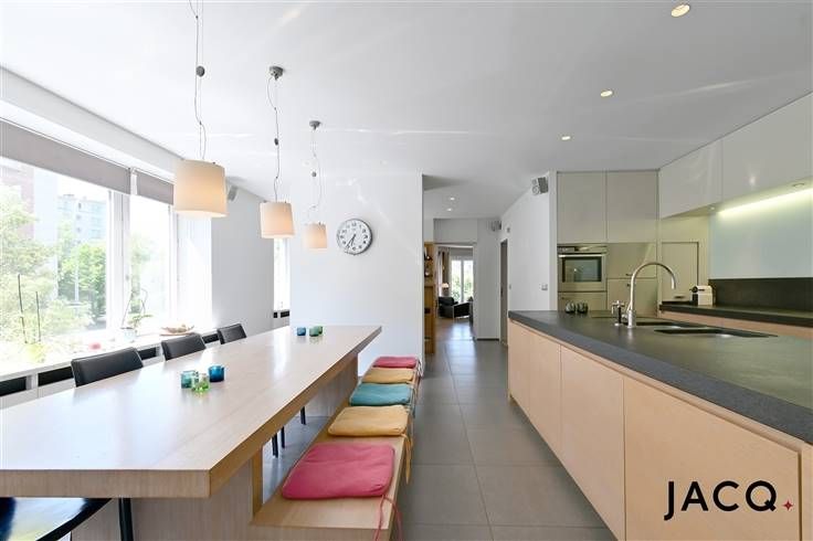 Ontdek dit royale en lichtrijke appartement op de eerste verdieping van een stijlvol gebouw, gelegen in een van de meest gegeerde wijken van Antwerpen: de Tentoonstellingswijk. Deze buurt, bekend om haar unieke modernistische architectuur, biedt een uitstekende combinatie van rust, groen en bereikbaarheid. Je woont er op een steenworp van het stadscentrum, nabij het station Antwerpen-Zuid, De Singel, winkels en het openbaar vervoer. Ook natuurliefhebbers komen aan hun trekken dankzij de nabijheid van de parken Den Brandt, Middelheim en het Nachtegalenpark. Via de A12 en de Kennedytunnel ben je bovendien snel onderweg richting Brussel of andere stadsdelen. Bij binnenkomst kom je terecht in een verzorgde inkomhal met gastentoilet. De woningstraalt charme uit dankzij klassieke elementen zoals hoge plafonds, visgraatparket en decoratieve lijsten. De vele ramen zorgen voor een overvloed aan natuurlijk licht, wat bijdraagt aan de warme en uitnodigende sfeer. Centraal in het appartement bevindt zich de leefkeuken: een stijlvolle en praktische ruimte met hoogwaardige apparatuur, veel opbergruimte en een gezellige eetplek. Ideaal voor zowel dagelijkse maaltijden als fijne momenten met gasten. Het appartement beschikt over drie ruime slaapkamers en een aparte dressing, die ook dienst kan doen als bureau of hobbykamer. Twee volledig uitgeruste badkamers zorgen voor extra comfort en privacy — één met ligbad en inloopdouche, de andere met een douche. Verder zijn er twee private kelde