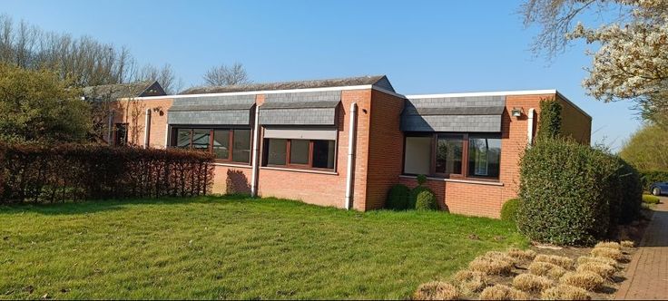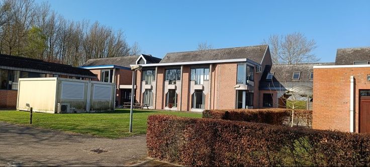 De groene omgeving zorgt voor een aangename en professionele werksfeer en dient als buffer tegen de verkeersgeluiden van de Stationsstraat.