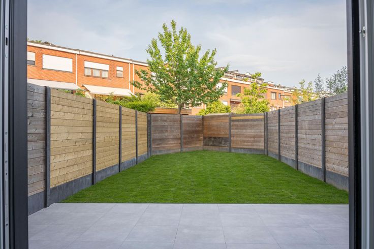 Een gemeenschappelijke speeltuin bereikbaar via de tuin.