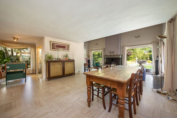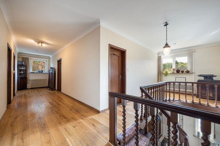 Charmante rietkapvilla op een mooi perceel van 2.090 m² met een mooi bomenbestand. De locatie van de villa biedt het ideale evenwicht tussen rust en de nabijheid van diverse scholen, winkels, openbaar vervoer en de grote verbindingswegen. De villa is een unieke mix tussen authenticiteit en hedendaags. Indeling van de villa: 5 slaapkamers, 2 ingerichte badkamers, ingerichte keuken met eiland, zeer ruime living ingedeeld met eetkamer en salon met open haard, bibliotheek, inkomhal, bureel, multifunctionele ruimte, zolder, ruime inkomhal, tuin met verwarmd zwembad. De villa biedt de mogelijkheid om een bijberoep uit te oefenen.