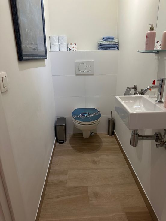 Apart toilet, ruime inkomhal, én handige berging met was- en droogkast aansluiting