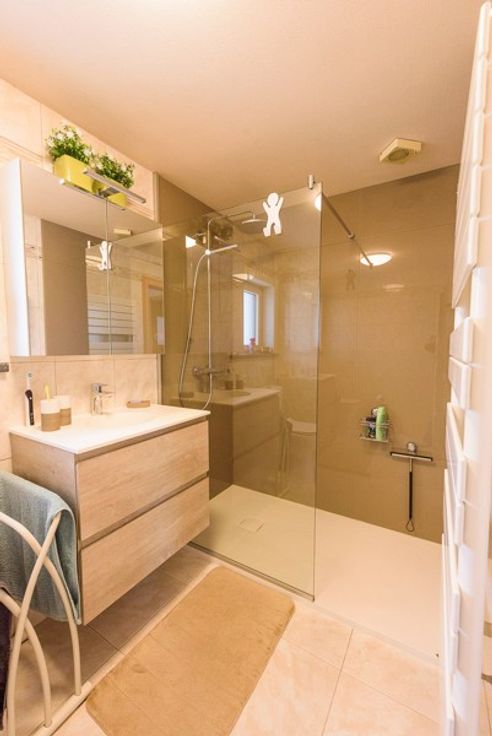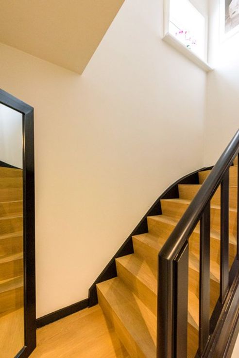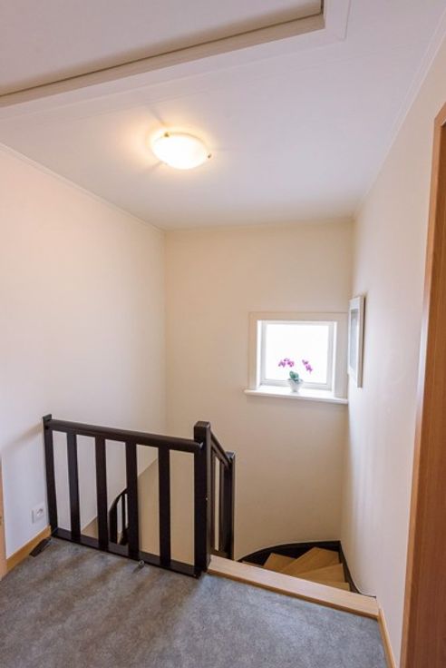 Via de nieuwe eiken trap gaan we naar de 1ste verdieping. Daar zijn 3 slaapkamers en een vernieuwde badkamer ingericht met een inloopdouche, een lavabo en 2de toilet. De woning beschikt ook over een zolderruimte.