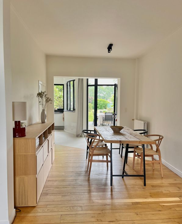 Temidden de rustige Boshoek, de groene long van de Antwerpse zuidrand, vinden we deze karaktervolle woning met prachtige tuin omringd door een oase van natuur en groen. We betreden de woning in de open en lichte leefruimte op massief houten parket, met aansluitend eetkamer en open keuken met kookfornuis, die uitgeeft op de lichte en groene tuin. Terras en tuin van maar liefst 50 meter diep met zicht op het prachtige groen van de Boshoek. Op elk uur van de dag kan je hier genieten van de zon! Handige berging voor fietsen en tuinmateriaal. Via de traphal met gastentoilet gaan we verder naar de 1e verdieping. Hier treffen we de ruime masterbedroom op massief parket. Aan de andere zijde van de hal een ruime dressing met inbouwkasten en voorzieningen voor wasmachine en droogkast. Via de dressing lopen we verder naar de badkamer die eveneens geniet van uitzicht op de groene omgeving. Hier vinden we een dubbele wastafel, toilet, douche en ligbad. Op de zolderverdieping (dak geïsoleerd in 2018) nog 2 gezellige slaapkamers op parket met grote maatkasten. Kelderruimte. Dubbele beglazing, CV ketel vernieuwd in 2018. EPC en electrische keuring in opmaak. Blanco asbestattest. Oprit en tevens steeds parkeergelegenheid in de straat. Laadpaal voorzien. Mogelijkheid om de naastgelegen bouwgrond (thans mee in gebruik als tuin) mee aan te kopen - zie Immoweb nr 20798010 prijs grond voor gesl bebouwing 400m2 215.000 EUR. Unieke kans op rustig en groen wonen met top bereikbaarheid! GEEN IMMO.