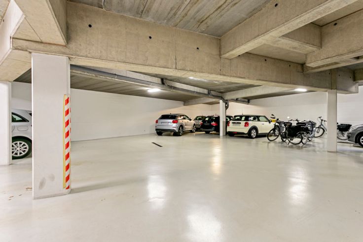 Benedenverdieping met overdekte autostaanplaats en kelder met private berging. Slechts een beperkt aantal appartementen in het gebouw met beneden een boekhoudkantoor. Verzorgde gemeenschappelijke delen met aansluitend aan de parking een gemeenschappelijk toilet.