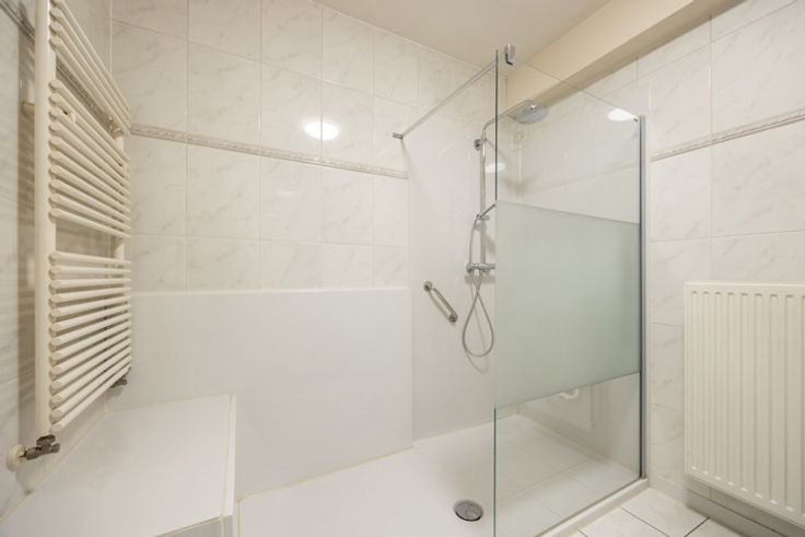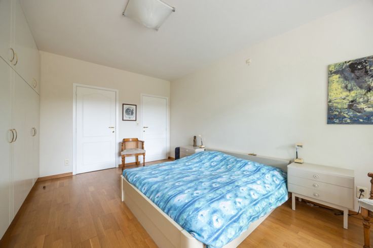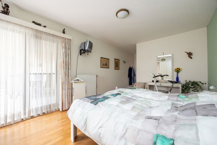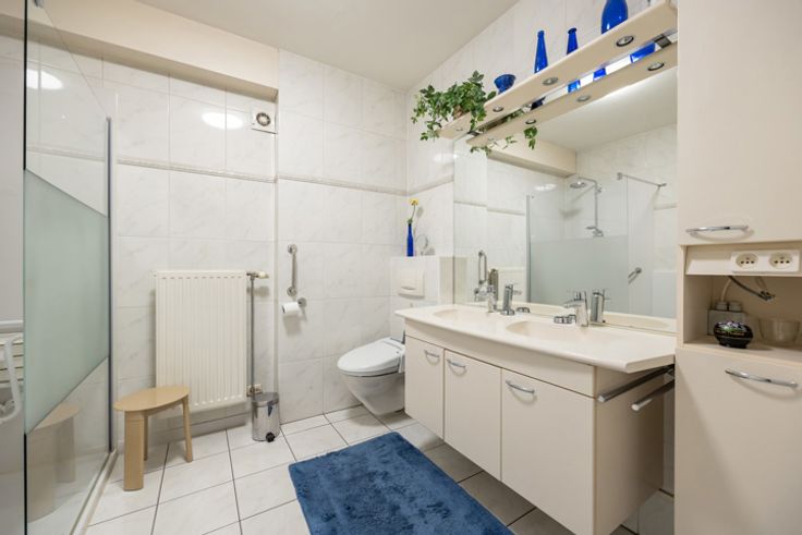 Ouderslaapkamer met eveneens toegang tot het terras, ingemaakte kasten en een ensuite badkamer met inloopdouche, badkamermeubel en toilet. De tweede slaapkamer heeft een aansluitende douchekamer. Beide slaapkamers hebben overigens ook parketvloeren.