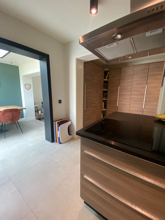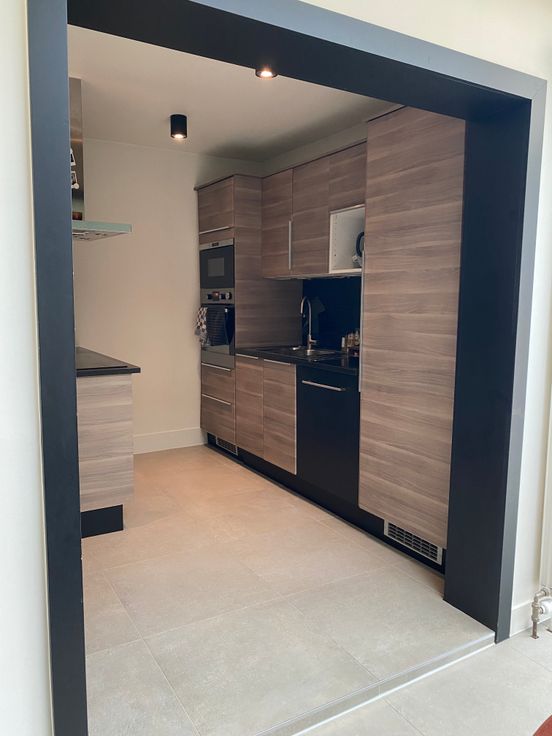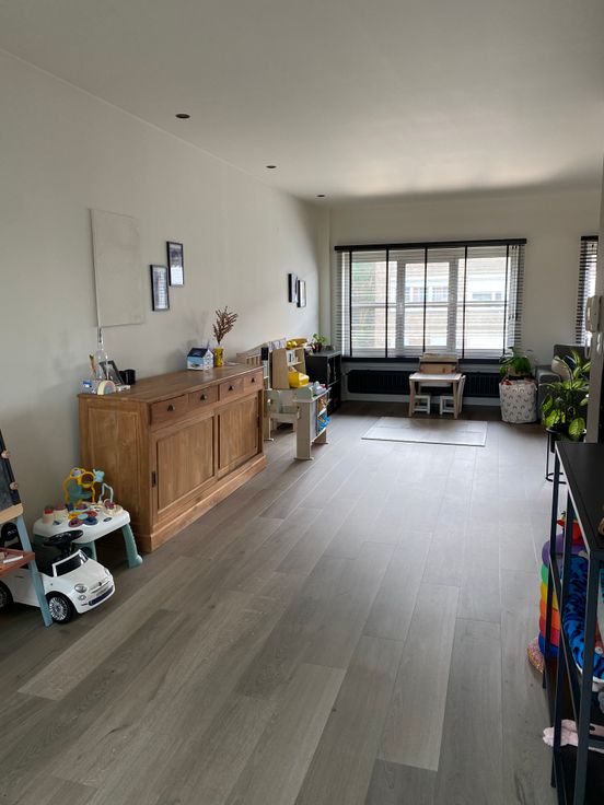 Ruime woon- en eetkamer, aansluitend de keuken met opnieuw veel opbergruimte