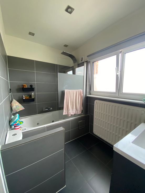 Badkamer met (bubbel)bad/douche, lavabo en wc