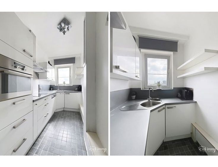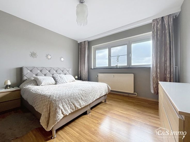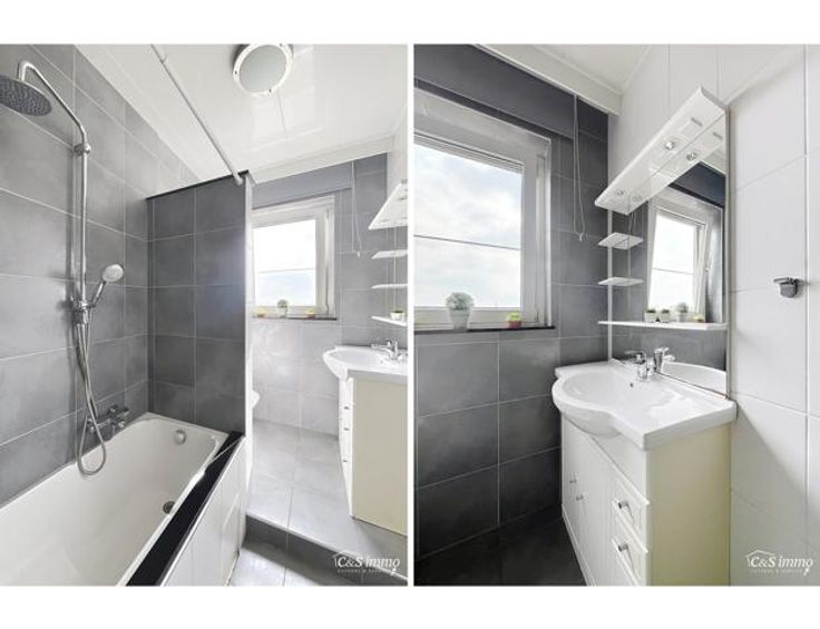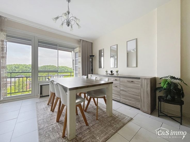 Lichtrijk appartement op de 6e verdieping met een aangenaam en open uitzicht. Bij het binnenkomen van dit appartement betreedt u de inkomhal (ca5 m²), uitgerust met praktische ingebouwde kasten. De woonkamer (ca. 28 m²) is voorzien van een onderhoudsvriendelijke tegelvloer en geniet veel natuurlijk licht dankzij de grote raampartijen, die toegang geven tot het zonnige terras (4 m²). Het terras is uitgerust met een dubbele bergkast en een vrolijke zonneluifel. Ingerichte keuken (ca.6 m²) met koelkast, vaatwasser, inductiekookplaat, dampkap, combi-oven en een aansluiting voor een wasmachine. De twee slaapkamers (ca.15 m² en 10 m²) zijn voorzien van automatische rolluiken. De badkamer (4 m²) is uitgerust met een wc, een keramisch lavabomeubel en een ruime bad/douchecombinatie. In de straat zijn er voldoende parkeerplaatsen en laadpalen aanwezig. Het appartement ligt op wandel- en fietsafstand van Velo-stations, parken, supermarkten, tankstations, het postkantoor en gezellige koffiebars. Bovendien vindt u hier regelmatig markten en fietst u in slechts 10 minuten naar het prachtige Galgenweel. In het gebouw is een fietsenstalling aanwezig, en mogelijkheid tot de aankoop van een parkingplaats. Goed onderhouden gebouw.